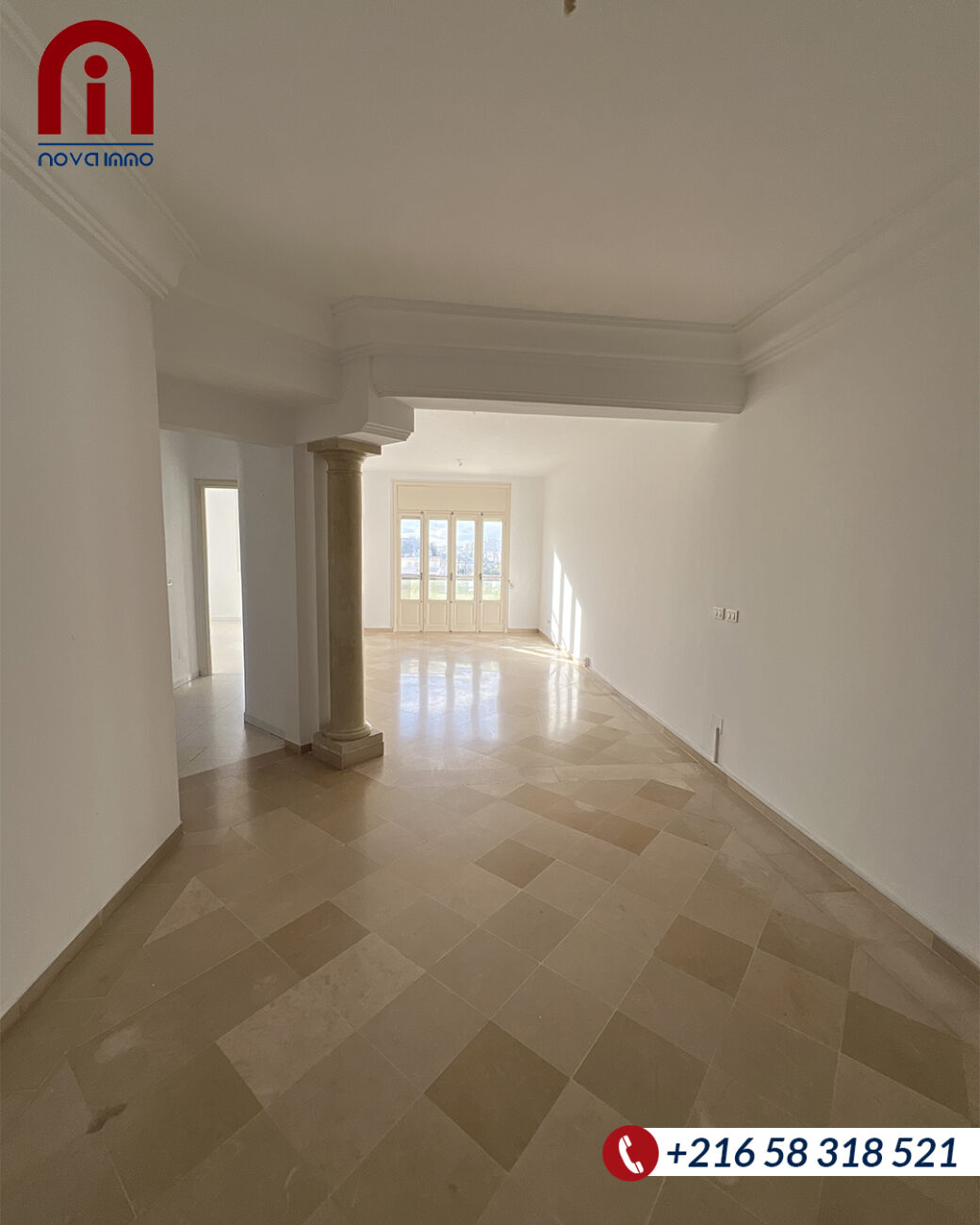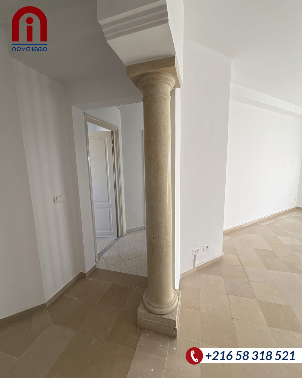 Nova Immo met en vente un appartement de type S+2 au 4ème étage (sans ascenseur) idéalement situé à route de Tunis km 1, Sfax.