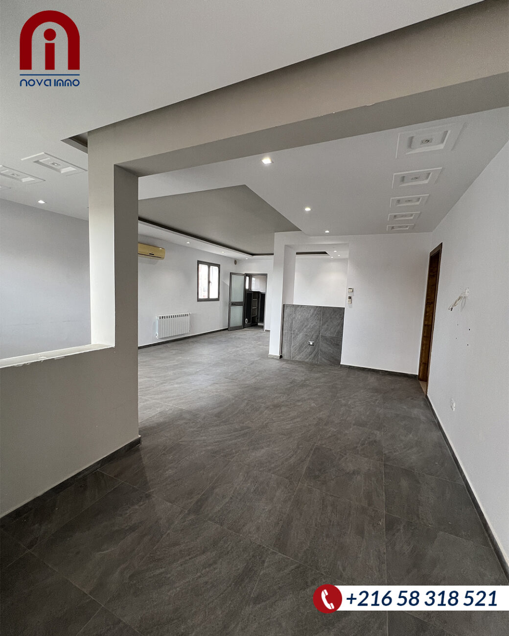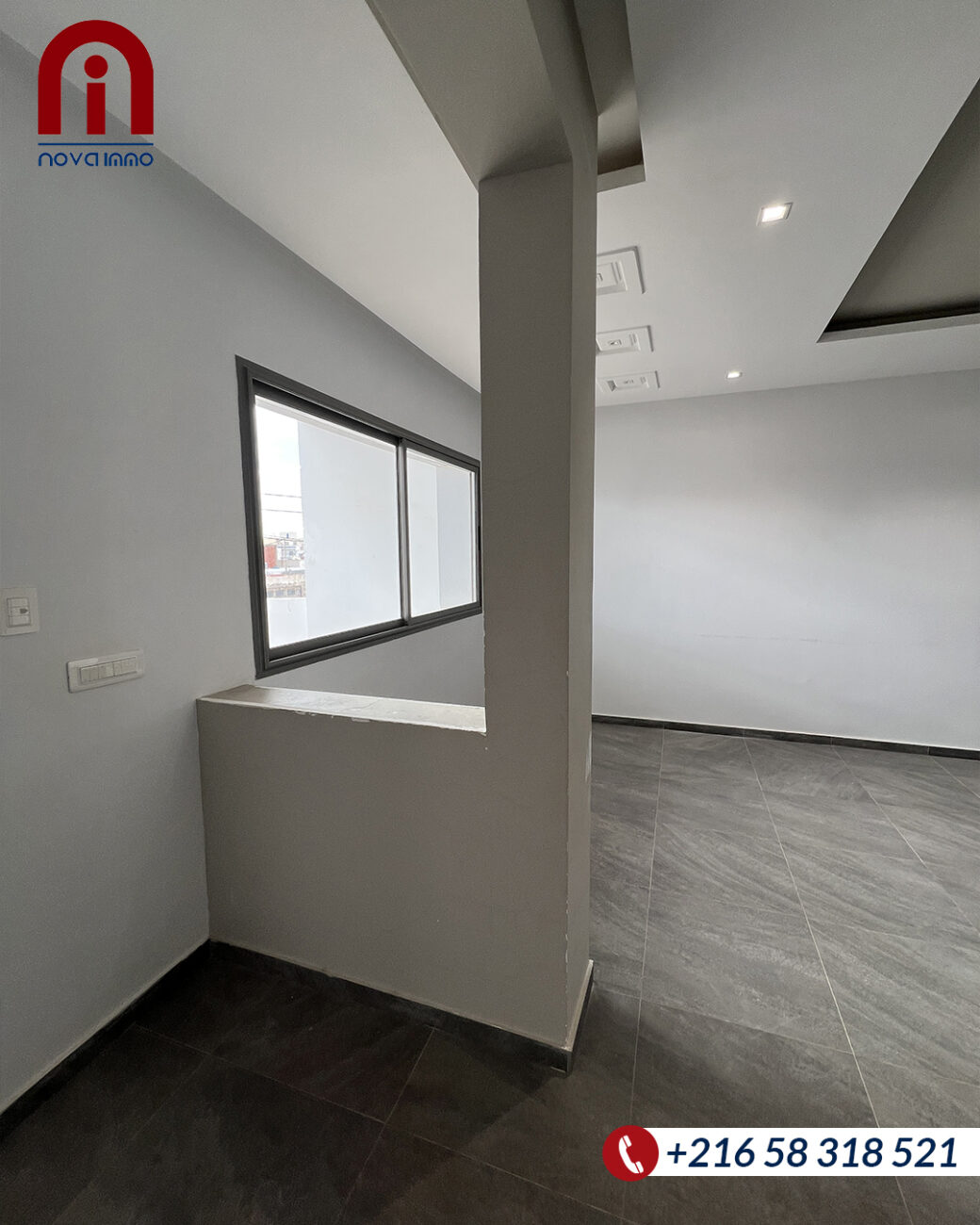 Nova Immo vous offre pour la location un étage de villa de type S+3 haut standing, situé à route Mahdia km 3,5 « Markez Kaaniche » dans un emplacement très proche de la route principale.