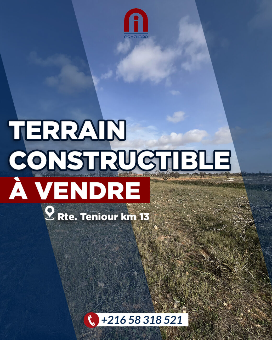 Nova Immo met à votre disposition un lot de terrain d’une superficie de 700m², situé à Route Teniour km 13 dans une zone idéale pour investissement à long terme ou bien pour des futurs projets résidentiels.